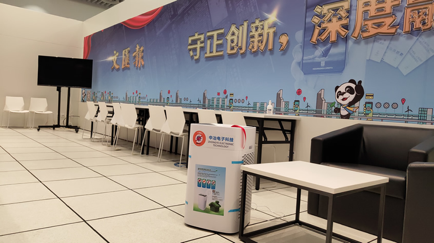 純物理方法殺滅新冠病毒的空氣凈化器在國(guó)家會(huì)展中心(上海)第三屆進(jìn)博會(huì)10000平方新聞中心安裝完畢,以及新聞中心全體工作人員人手一份的殺滅新冠易呼吸口罩伴侶已送到指定地點(diǎn),寧波中冶電子科技公司為進(jìn)博會(huì)新聞中心安全防疫保駕護(hù)航!