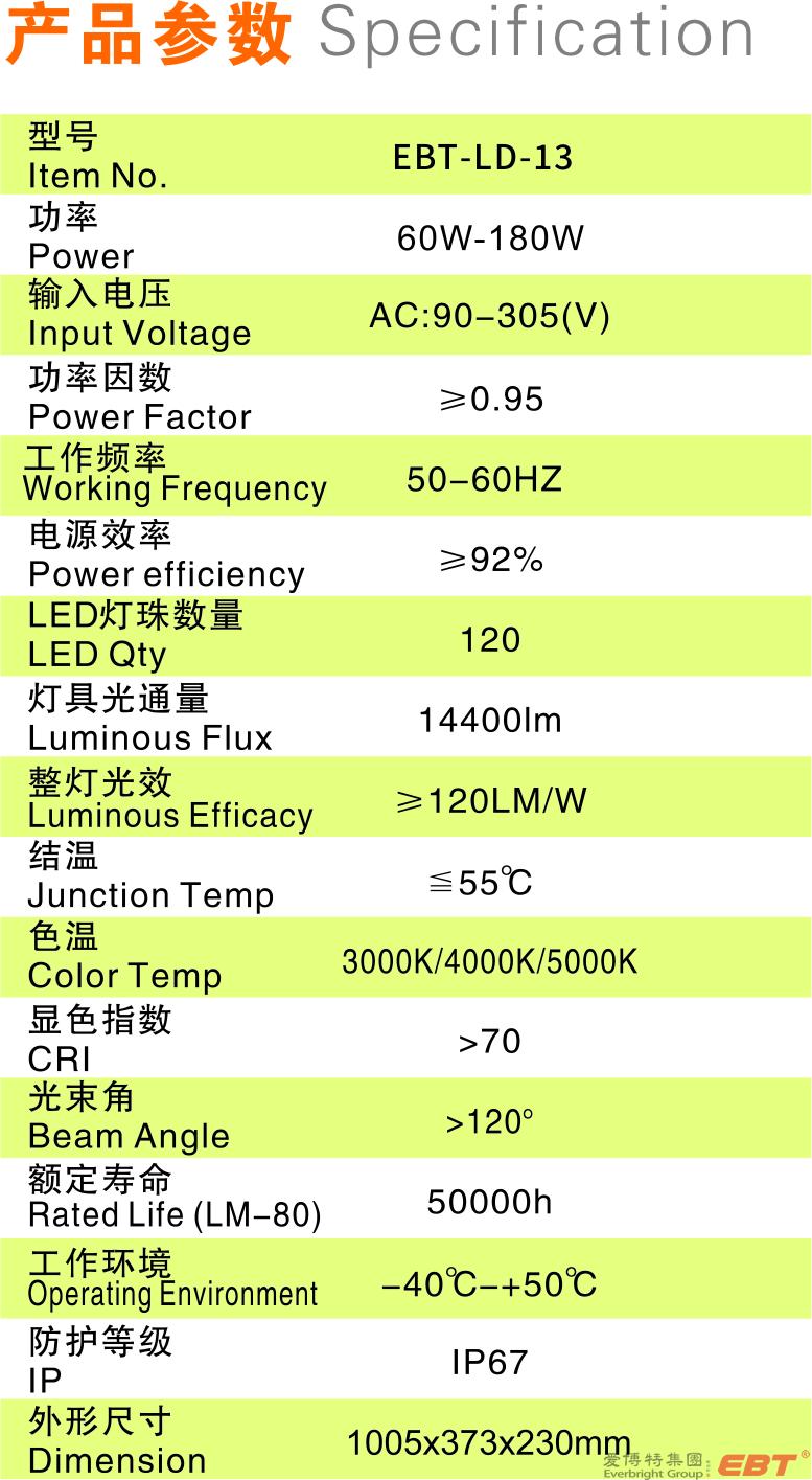 產(chǎn)品描述:采用國際知名品牌芯片,高亮度,低光衰; 防水防塵防腐蝕; 采用通孔結(jié)構(gòu)散熱,使用壽命長; 科學(xué)配光,適用多種場所。